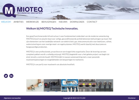 Een screenshot van de homepage van de nieuwe website van Mioteq met in de header een foto van een IJslands landschap met een slingerweg. Geen traject is hetzelfde, alles is uniek.